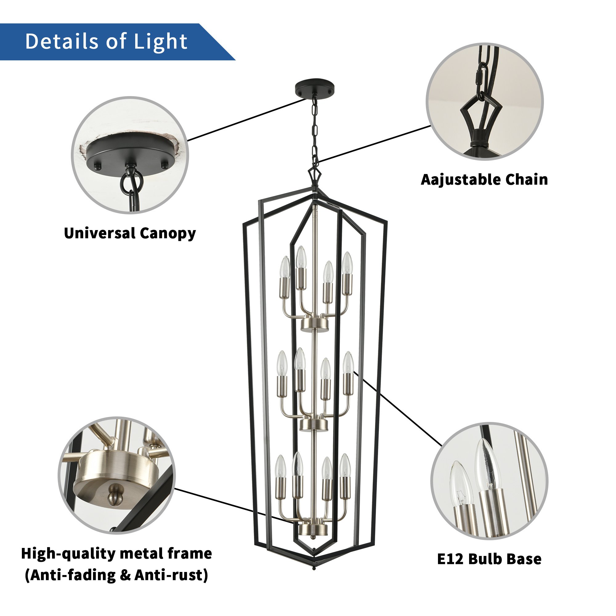 [Light Bulb Requirements]Use 12 x E12 base bulbs to light up this foyer chandelier and you will see its unique beauty. (Max 60W & Bulbs not Included)
