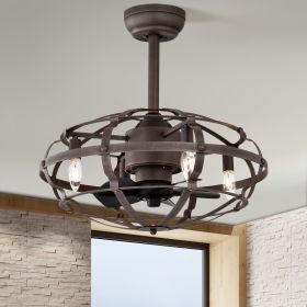 Best sells Modern Enclosed Ceiling Fan Indoor with Remote Control and Bladeless Rust Red Industrial Ceiling Fan Light Kit