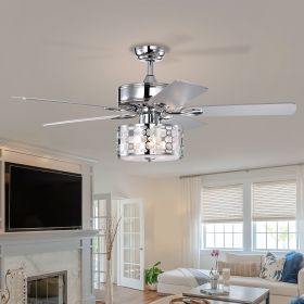 52" Elegant Ceiling Fan Light with Remote, Crystal Chandelier Fan 5 Chrome Reversible Wood Blades for Dinning Room Bedroom Living Room